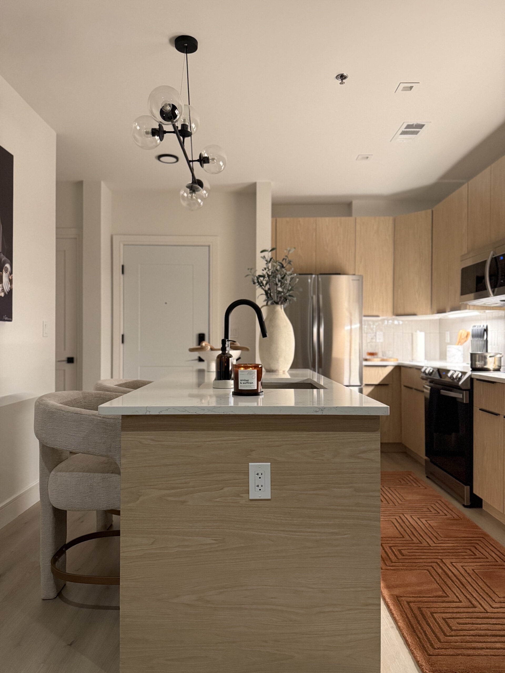 Tip: Change up surface styling with the seasons—fresh flowers in spring, candles in winter, faux fall tree stems in autumn. This keeps your home feeling alive and dynamic year-round.