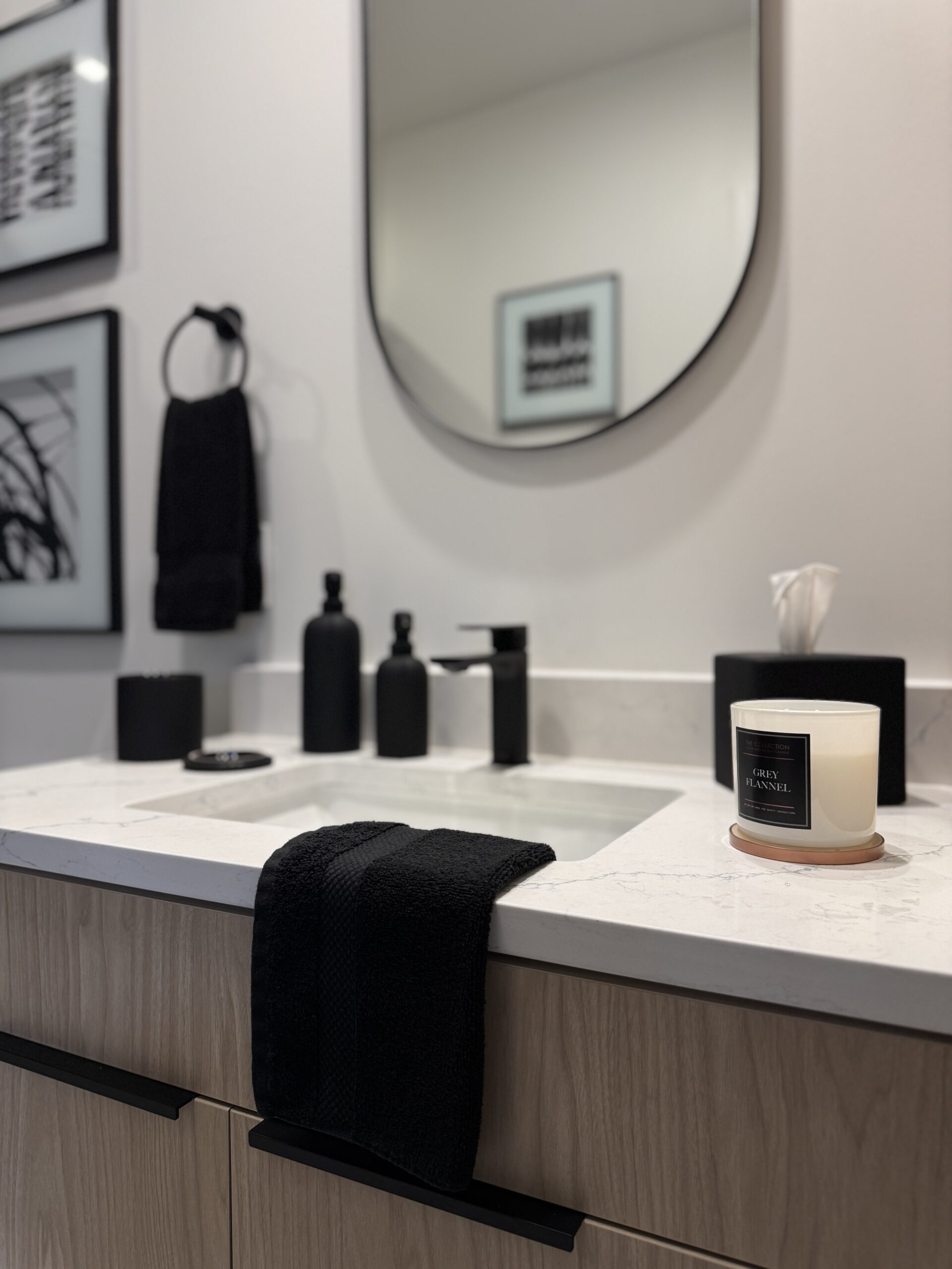If you’re looking to update your bathroom without renovations, here’s what worked for me: I focused on items that maximize vertical space, such as vertically stacking wall art and over-the-sink organizers, to keep the area organized without crowding any other area of the room. I invested in quality textiles, including bath mats and towels, that add subtle texture and durability. Matching accessories helped unify the look of my countertops, while compact storage baskets kept everyday items neatly contained and reduced disorder. I also paid attention to small design details, like soap dispensers, which added the finishing touches that make the space feel complete.